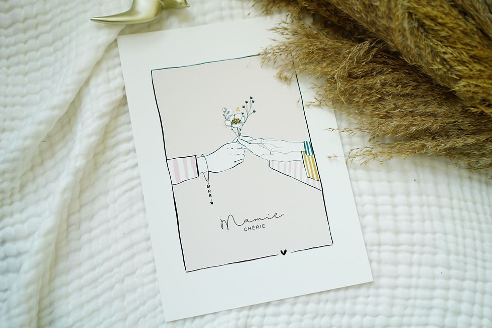 Des affiches Maman, des sacs personnalisés, des trousses personnalisées, une très belle gamme de t-shirts personnalisés avec votre famille illustrée.