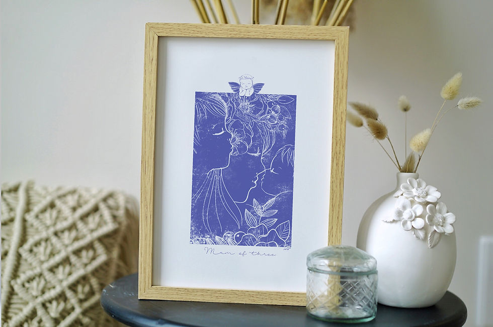 Des affiches Maman, des sacs personnalisés, des trousses personnalisées, une très belle gamme de t-shirts personnalisés avec votre famille illustrée.